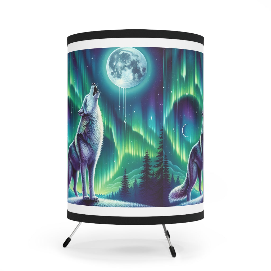 Northern Lights Wolf Tripod Lamp, Home Decor, Unique Gift, Table Lighting, Bedroom Accent, Nature Lover's Gift
